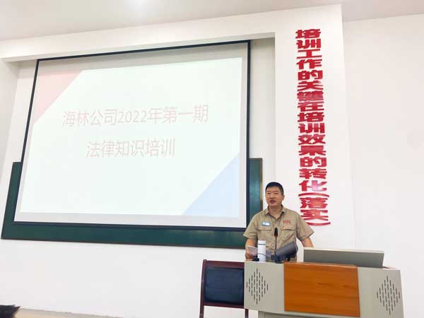 2022年7月23日上午,在符合疫情防控要求的前提下,海林公司開展了公司級2022年第一期法律知識專題培訓。此次培訓會共有71人參加,培訓部門涉及國際業(yè)務部、國內市場管理部、采購中心、設備處、能源管理中心、技術研發(fā)中心、質量管理中心、資產金融部、項目發(fā)改處、配送中心等相關部門。會議由人力資源部副部長溫濤進行開場致辭,溫部長明確提出了此次法律培訓的目的、意義和要求,同時預祝2022年法律知識專題培訓圓滿成功。