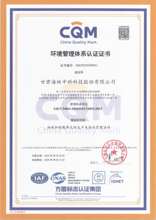 2022年9月通過(guò)了環(huán)境管理體系認(rèn)證(國(guó)標(biāo)版)